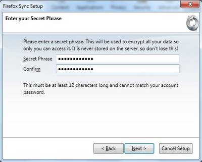 Ở bước tiếp theo, Firefox yêu cầu bạn khởi tạo Secret Phrase (tương tự như chữ ký bảo mật). Điền Secret Phrase vào khung trống và xác nhận bên dưới.