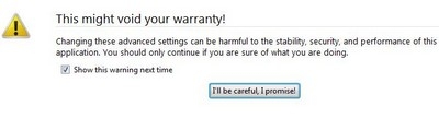 - Mở 1 tab mới trên Firefox, điền about:config vào khung địa chỉ, nhấn Enter . Nhấn nút ' I'll becarefull, I promise! ' để tiếp tục.